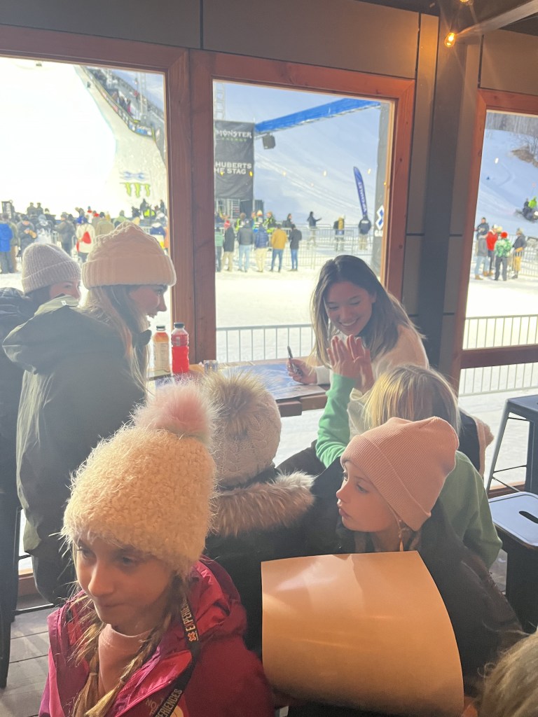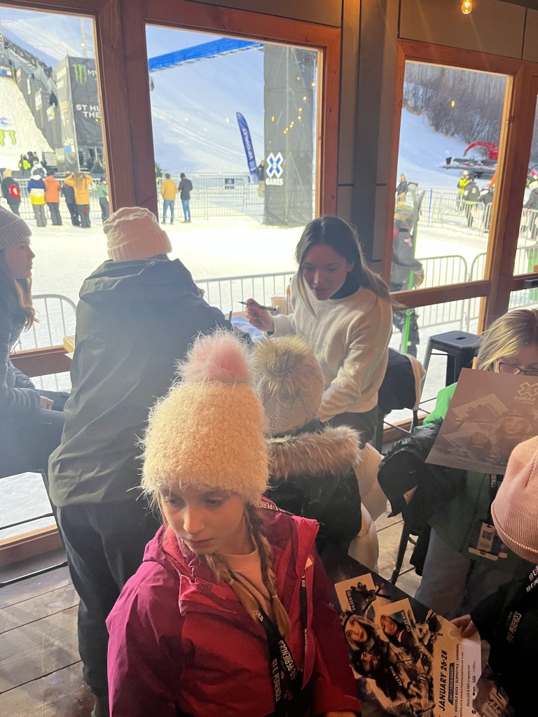 On my day off, XGames hosted an athlete signing where I got to meet the cutest little snowboarders / skiers, and it was so awesome to see the next generation (who will be taking my job in a couple years), while the XIP lounge served us delicious hors-d’œuvres, and we got to watch some events from a primely located lounge right below the superpipe.